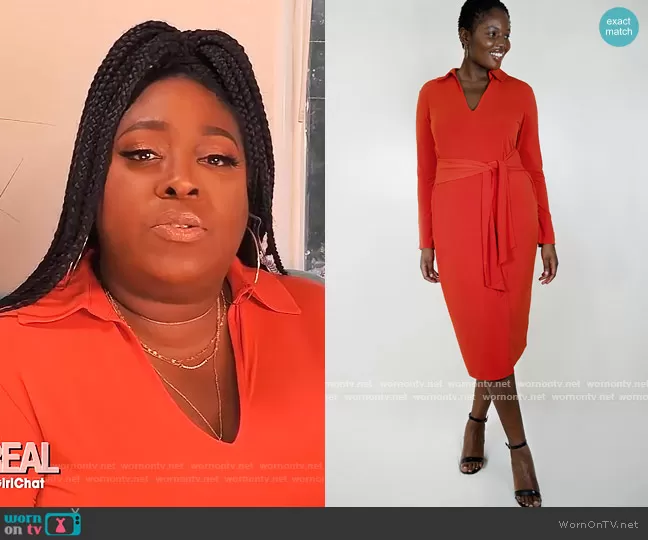 Loni Love on The Real on BETher was spotted wearing this red collared dress on The Real on Apr 02 2021's episode. Loni's Dress is the Tie Waist Dress with Collar by Eloquii.