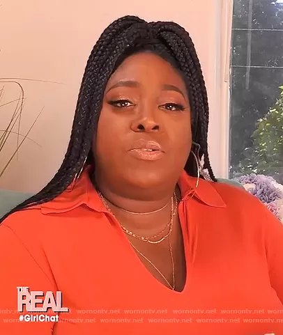 Garcelle’s orange button embellished blazer on The Real