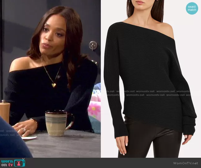 Lani Price (played by Sal Stowers) on Days of our Lives on Peacock was spotted wearing this black ribbed off-shoulder sweater on Days of our Lives on Apr 07 2021's episode. Lani's Sweater is the Jacqueline Off-The-Shoulder Sweater by Intermix.