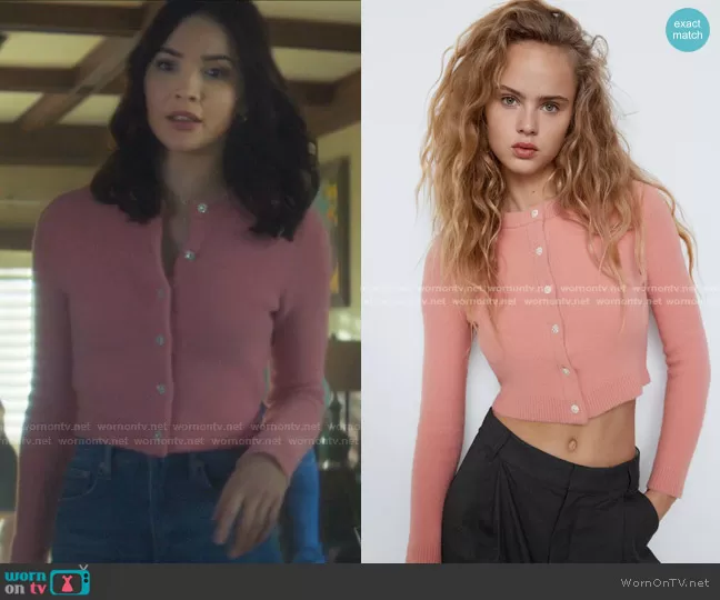 Bess (played by Maddison Jaizani) on Nancy Drew on The CW was spotted wearing this pink jewel button cropped cardigan on Nancy Drew on episode 'he Scourge of the Forgotten Rune' (2x11) in Apr 2021. Bess's Sweater is the Jewel Button Jacket by Zara.