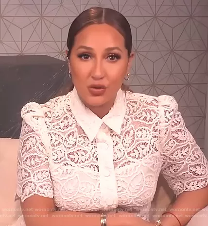 Adrienne Houghton on The Real on BETher was spotted wearing this white lace mini dress on The Real on Apr 09 2021's episode. Adrienne's Dress is the Mini Lace Shirt Dress by Sandro.