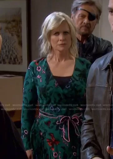 Kayla Brady (played by Mary Beth Evans) on Days of our Lives on Peacock was spotted wearing this green floral wrap dress on Days of our Lives on Apr 10 2021's episode. Kayla's Dress is the Amiya Maxi Dress by Diane von Furstenberg.