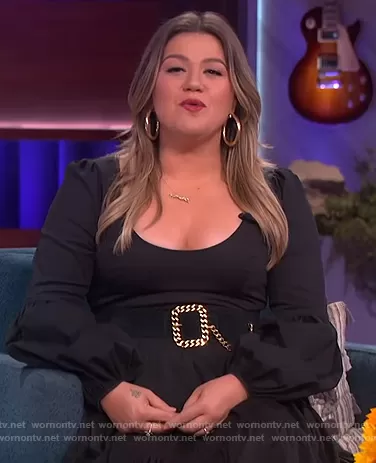 Kelly Clarkson on The Kelly Clarkson Show on NBC was spotted wearing this black scoop neck mini dress on The Kelly Clarkson Show on Apr 12 2021's episode. Kelly's Dress is the Rose Square-Neck Mini Dress by Cinq a Sept.