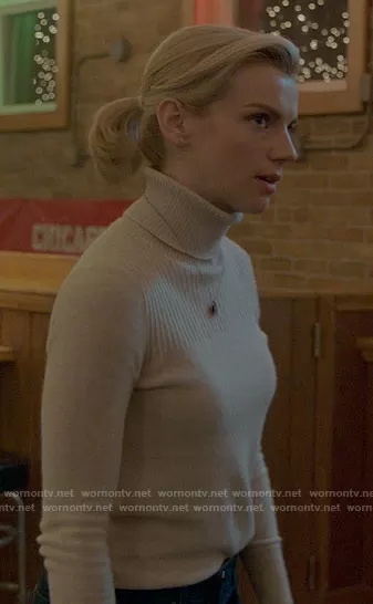 Sylvie Brett (played by Kara Killmer) on Chicago Fire on NBC was spotted wearing this beige turtleneck on Chicago Fire on episode 'A Couple Hundred Degrees' (9x11) in Apr 2021. Sylvie's Sweater is the Kressy Sweater in Oatmeal by Veronica Beard .