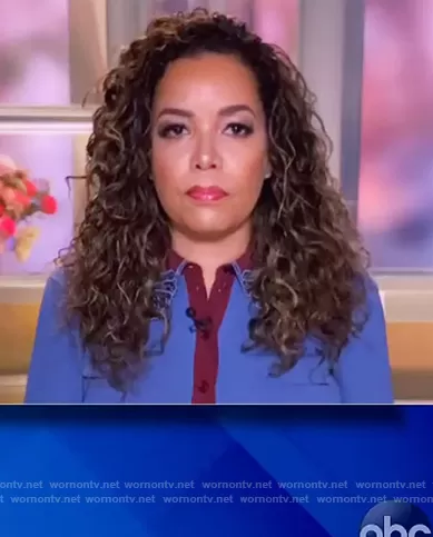 Sunny Hostin on The View on ABC was spotted wearing this blue embroidered collar blouse on The View on Apr 13 2021's episode. Sunny's Top is the Embroidered ribbed cotton polo shirt by Chloe.