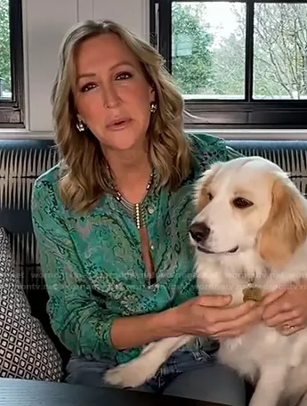 Lara Spencer on Good Morning America on ABC was spotted wearing this green floral shirt on Good Morning America on Feb 02 2022's episode. Lara's Top is the Perfect Shirt in Casbah Paisley by J. Crew.