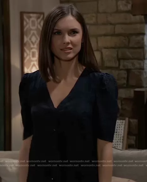 Willow Tait (played by Katelyn MacMullen) on General Hospital on ABC was spotted wearing this blue leopard print v-neck top on General Hospital on Apr 14 2021's episode. Willow's Top is the Puff Sleeve Leopard Print Blouse by 1. State.
