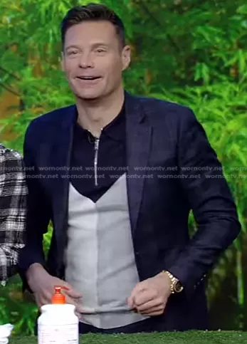 Butler Colorblock Wool Blend Zip Polo by Reiss worn by Ryan Seacrest on Live with Kelly and Ryan