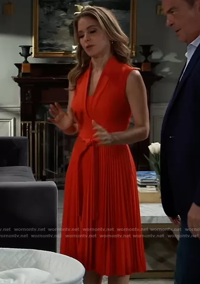 Olivia Falconeri (played by Lisa Lo Cicero) on General Hospital on ABC was spotted wearing this red pleated tie waist dress on General Hospital on Apr 25 2022's episode. Olivia's Dress is the Pleated Dress by Karen Millen.
