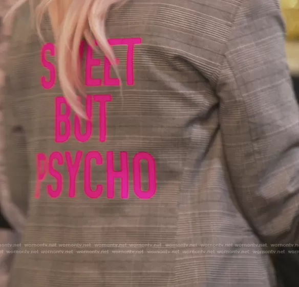 Margaret Josephs on The Real Housewives of New Jersey on Bravo was spotted wearing this plaid Sweet but Psyco blazer on The Real Housewives of New Jersey on episode 'Pineapple Puss' (11x09) in Apr 2021. Margaret's Blazer is the Sweet But Phycho Plaid Blazer by Hipchik.