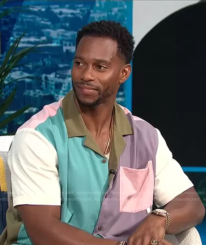 on E! News on E! was spotted wearing this colorblock short sleeve shirt on E! News Daily Pop on Apr 20 2021's episode. 's Shirt is the Colour Block Tencel Blend Shirt by Scotch & Soda.