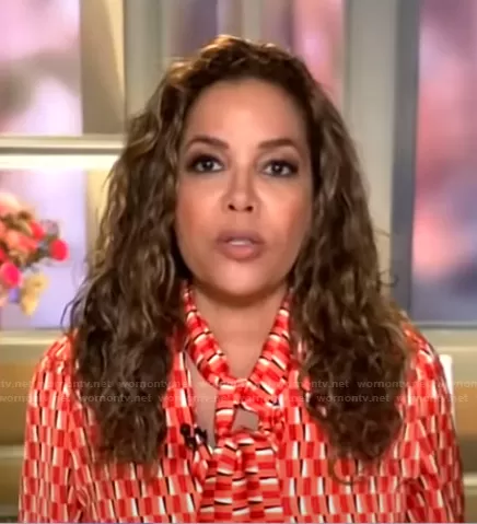Simone Pussy-Bow Printed Blouse by Cefinn worn by Sunny Hostin on GMA