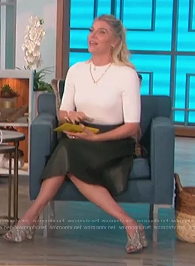 Amanda Kloots on The Talk on CBS was spotted wearing this colorblock knit dress on The Talk on Apr 20 2021's episode. Amanda's Dress is the Betsiyy Stitch Detail Full Skirted Dress by Ted Baker.