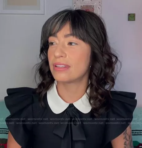 on Today on NBC was spotted wearing this black tie neck dress with white collar on Today on Apr 21 2021's episode. 's Dress is the Peter Pan Collar Flared Dress by RED Valentino.