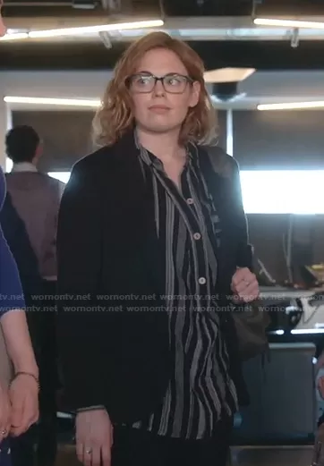 (played by ) on Good Trouble on Freeform was spotted wearing this black striped shirt on Good Trouble on episode 'She's Back' (3x10) in Apr 2021. 's Top is the Summer Breeze Button Tunic by Free People.