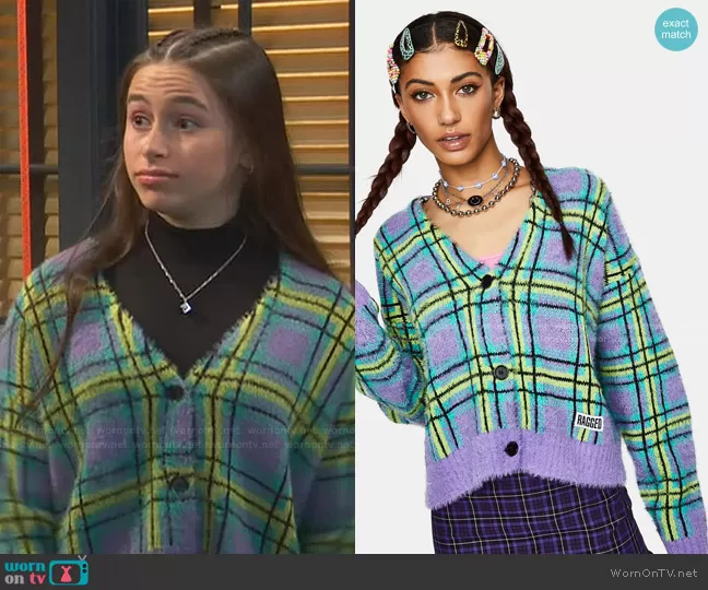 Goof Fuzzy Plaid Cardigan by The Ragged Priest worn by Tess O'Malley (Sky Katz) on Ravens Home