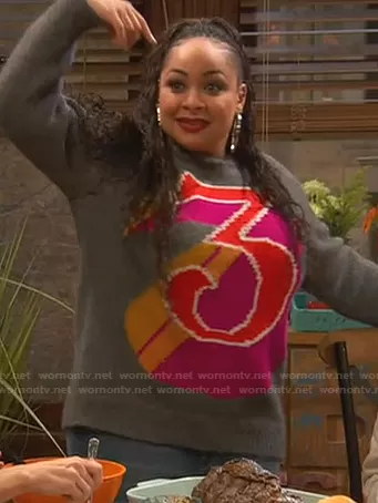 Raven Baxter (played by Raven-Symoné) on Ravens Home on Disney was spotted wearing this grey 3 print sweater on Ravens Home on episode 'Plays of Our Lives' (4x12) in Apr 2021. Raven's Sweater is the The Beatles Intarsia Alpaca-blend Sweater by Stella McCartney.