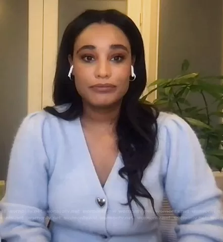 on Today on NBC was spotted wearing this pale blue heart button cardigan on Today on Apr 23 2021's episode. 's Sweater is the Heart Button Cardigan by & Other Stories.
