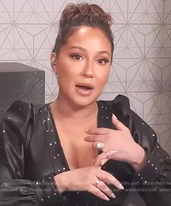 Faux leather studded mini dress by Topshop worn by Adrienne Houghton on The Real
