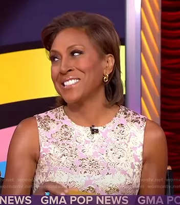 Robin Roberts on Good Morning America on ABC was spotted wearing this pink metallic sleeveless dress on Good Morning America on Apr 26 2021's episode. Robin's Dress is the Jacquard A-Line Dress by Dolce & Gabbana.