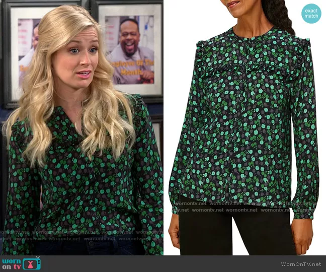 Gemma (played by Beth Behrs) on The Neighborhood on CBS was spotted wearing this green floral button down top on The Neighborhood on episode 'Welcome to the Challenge' (3x15) in Apr 2021. Gemma's Top is the Winter Ditsy Floral Print Top by Whistles.