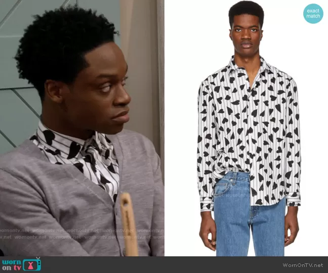 Lane (played by Austin Crute) on Call Your Mother on ABC was spotted wearing this heart print shirt on Call Your Mother on episode 'The Raines Games' (1x12) in May 2021. Lane's Shirt is the Black and White Heart Stripe Shirt by JW Anderson.