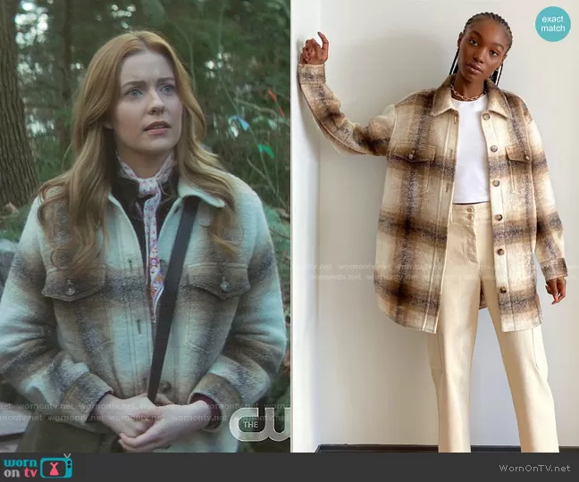 Nancy Drew (played by Kennedy McMann) on Nancy Drew on The CW was spotted wearing this plaid oversized flannel shirt on Nancy Drew on episode 'The Beacon of Moonstone Island' (2x13) in Apr 2021. Nancy's Jacket is the Ganna Jacket in Espace Mocha by Wilfred Free at Aritzia.
