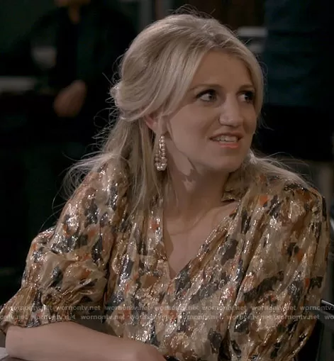 Gina Dabrowski (played by Annaleigh Ashford) on B Positive on CBS was spotted wearing this metallic printed dress on B Positive on episode 'A Cute Asphyxiation' (1x16) in Apr 2021. Gina's Dress is the Gloria Dress by ba&sh.