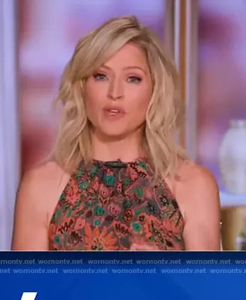 Sara Haines on The View on ABC was spotted wearing this floral print halter neck dress on The View on Apr 30 2021's episode. Sara's Dress is the Elara Floral Halter Neck Silk Dress by A.L.C. . Sara's Dress is the Kaplan Floral Halter Dress by A.L.C. .