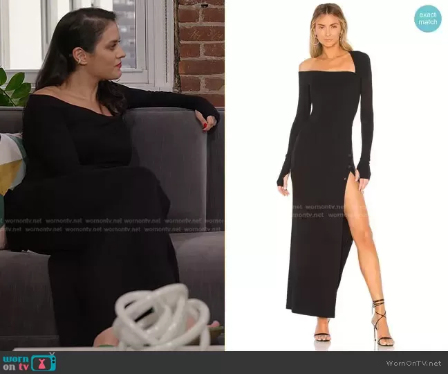 Donna Farizan on Today on NBC was spotted wearing this black asymmetric neck dress on Today on Jul 11 2022's episode. Donna's Dress is the Morris Dress by Alix NYC.