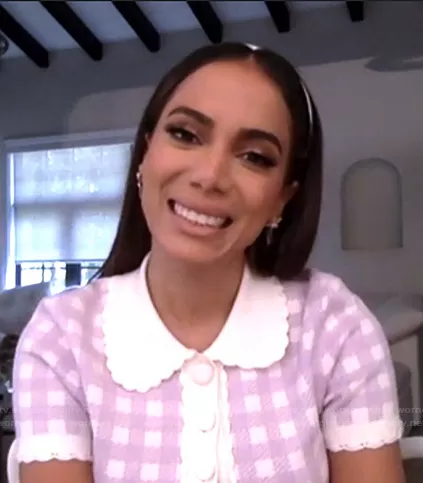 on Today on NBC was spotted wearing this lilac checked polo on Today on May 03 2021's episode. 's Top is the Micro Checked Knit Polo by Maje.