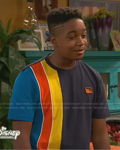 Booker Baxter (played by Issac Ryan Brown) on Ravens Home on Disney was spotted wearing this colorblock tee on Ravens Home on episode 'The Slumber Years' (4x13) in Apr 2021. Booker's Shirt is the Short Sleeve Vertically Striped Color-Block Tee by Lacoste.