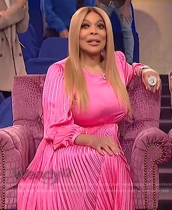 Wendy Williams on The Wendy Williams Show on Various was spotted wearing this pink pleated dress on The Wendy Williams Show on May 10 2021's episode. Wendy's Dress is the Naples Pleated Cutout Handkerchief Dress by A.L.C..