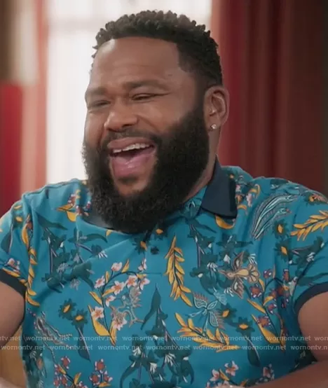 Andre Johnson (played by Anthony Anderson) on Black-ish on ABC was spotted wearing this blue floral polo on Black-ish on episode 'Snitches Get Boundaries' (7x18) in May 2021. Andre's Shirt is the Floral Print Polo Shirt by Etro.