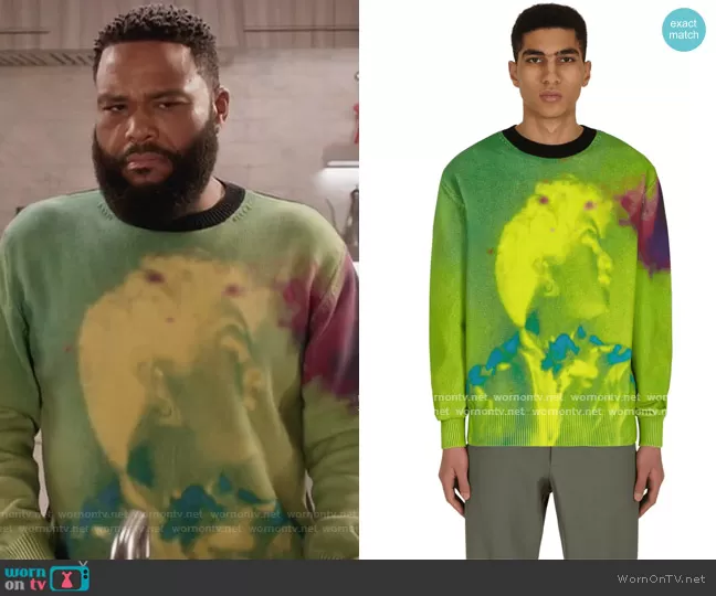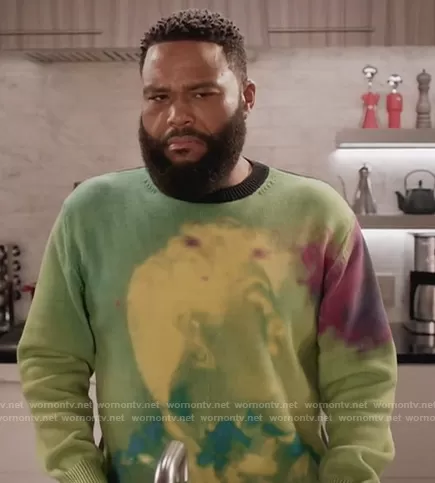 Andre Johnson (played by Anthony Anderson) on Black-ish on ABC was spotted wearing this green tie dye sweater on Black-ish on episode 'Snitches Get Boundaries' (7x18) in May 2021. Andre's Sweater is the Nameday Sweater by Dries Van Noten.