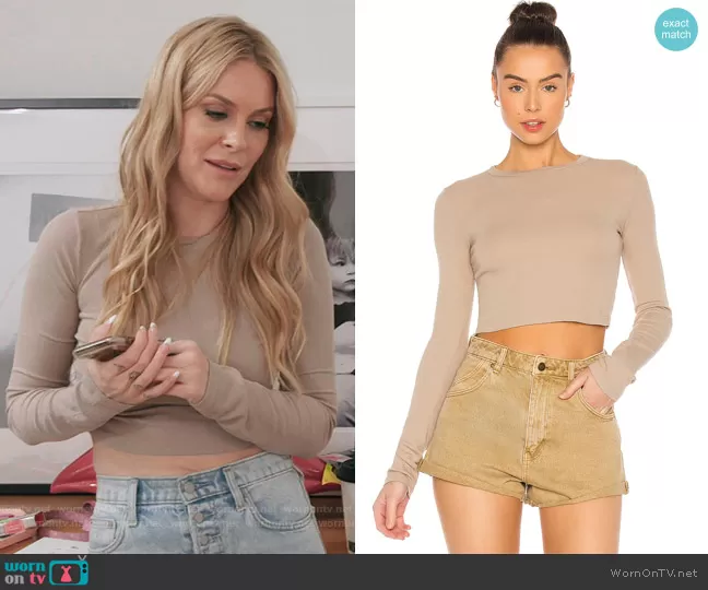 Leah McSweeney on The Real Housewives of New York City on Bravo was spotted wearing this beige long sleeve top on The Real Housewives of New York City on episode 'Burning Up' (13x02) in May 2021. Leah's Top is the Verona Tee by Cotton Citizen.