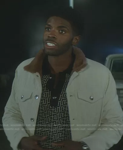 (played by ) on Nancy Drew on The CW was spotted wearing this black monogram polo shirt on Nancy Drew on episode 'The Celestial Visitor' (2x15) in May 2021. 's Shirt is the Monogram Knit Polo Shirt by Balmain.