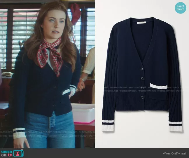 Nancy Drew (played by Kennedy McMann) on Nancy Drew on The CW was spotted wearing this navy ribbed sleeve cardigan on Nancy Drew on episode 'The Celestial Visitor' (2x15) in May 2021. Nancy's Sweater is the Serena Cardigan by Rag & Bone.