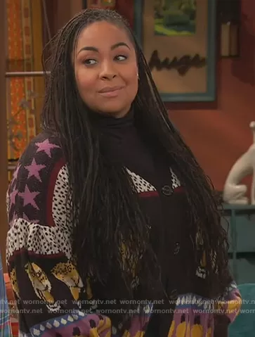 Raven Baxter (played by Raven-Symoné) on Ravens Home on Disney was spotted wearing this mixed print cardigan on Ravens Home on episode 'Say Yes To The Protest' (4x16) in May 2021. Raven's Sweater is the Mix Print Cardigan by Farm Rio.