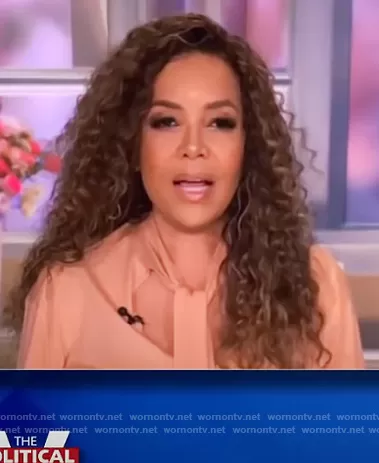 Sunny Hostin on The View on ABC was spotted wearing this pink scoop neck blouse with tie on The View on May 17 2021's episode. Sunny's Top is the Scoop-neck Blouse by Chloe.
