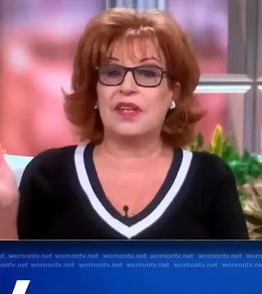 Joy Behar on The View on ABC was spotted wearing this black stripe v-neck sweater on The View on May 18 2021's episode. Joy's Sweater is the Axelle V-Neck Knit Top by L'Agence.