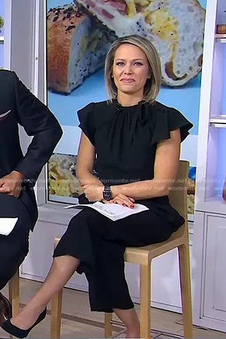 Dylan Dreyer on Today on NBC was spotted wearing this black flutter sleeve jumpsuit on Today on Oct 13 2025's episode. Dylan's Jumpsuit is the Sybil Flutter Sleeve Jumpsuit by Gal Meets Glam Collection.