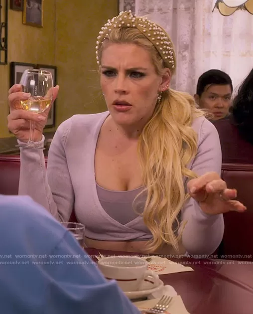 Summer Dutkowsky (played by Busy Philipps) on Girls5eva on Peacock was spotted wearing this pearl embellished headband on Girls5eva on episode 'Alf Musik' (1x03) in May 2021. Summer's Headband is the Faux Leather Pearl Knotted Headband by Lele Sadoughi .
