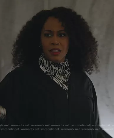 Lola Carmichael (played by Simone Missick) on All Rise on OWN was spotted wearing this velvet floral sweater on All Rise on episode 'Leap of Faith' (2x16) in May 2021. Lola's Sweater is the Contisy Floral Velvet Turtleneck Top by Dries Van Noten.