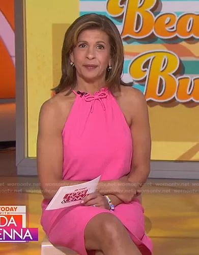Hoda Kotb on Today on NBC was spotted wearing this pink halter mini dress on Today on May 19 2021's episode. Hoda's Dress is the Katie Bow Shift Dress by Trina Turk.