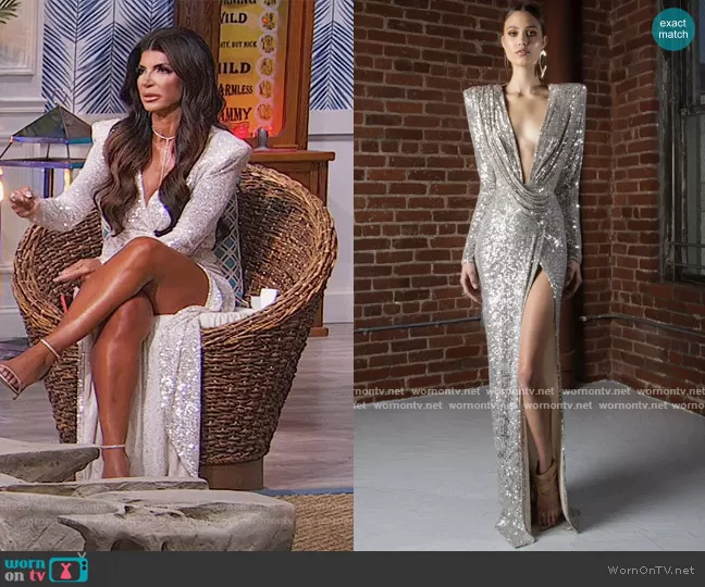 Teresa Giudice on The Real Housewives of New Jersey on Bravo was spotted wearing this reunion dress on The Real Housewives of New Jersey on episode 'Reunion Part 1' (11x14) in May 2021. Teresa's Dress is the Harper 24 by Michael Costello.