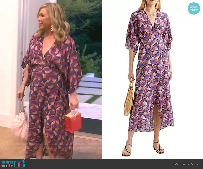Kathy Hilton on The Real Housewives of Beverly Hills on Bravo was spotted wearing this pink printed v-neck dress on The Real Housewives of Beverly Hills on episode 'Dressed to the 90210s' (11x01) in May 2021. Kathy's Dress is the Printed Midi Dress by Jaline.