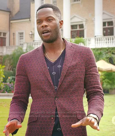 Jeff Colby (played by Sam Adegoke) on Dynasty on The CW was spotted wearing this navy v-neck sweater on Dynasty on episode 'The Aftermath' (4x03) in May 2021. Jeff's Sweater is the G Stripe V-neck jumper by Gucci.