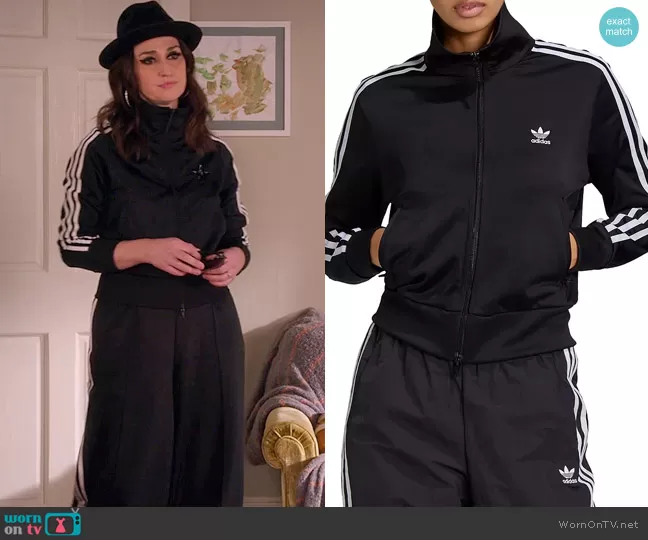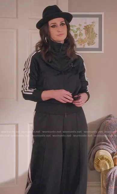 Dawn Solano (played by Sara Bareilles) on Girls5eva on Peacock was spotted wearing this black track suit on Girls5eva on episode 'Cease and Desist' (1x06) in May 2021. Dawn's Jacket is the Adicolor Classics Firebird Primeblue Track Jacket by Adidas . Dawn's Pants is the Three Stripes Relaxed Pants by Adidas.