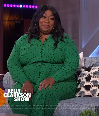 Dot Long Sleeve Jumpsuit by Eloquii worn by Loni Love on The Kelly Clarkson Show